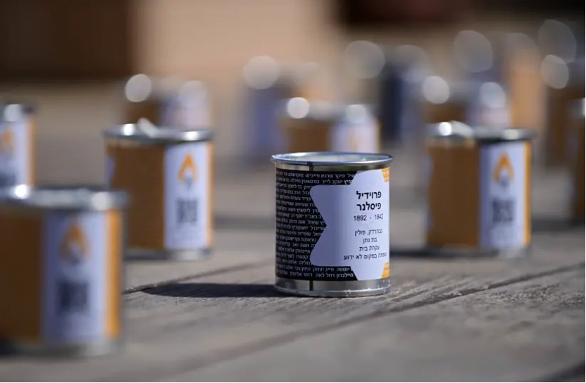 2022年4月26日,在大屠殺紀念日之前,特拉維夫的哈比馬廣場(Habima Square)有向公眾發送印有大屠殺受害者名字的週年忌辰(Yahrzeit)蠟燭的行動。(照片來源:TOMER NEUBERG/FLASH90)