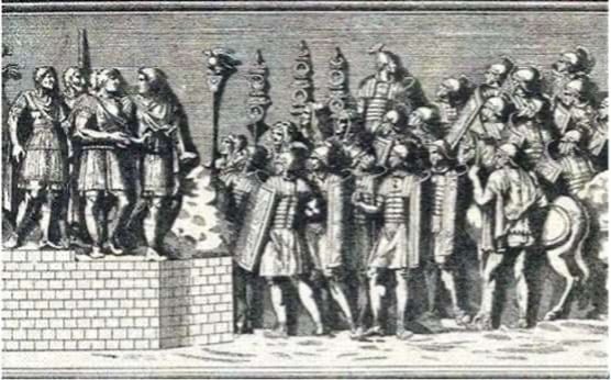 生活在拜占庭帝國的文士與拜占庭皇帝。(圖片來源:Wikipedia)