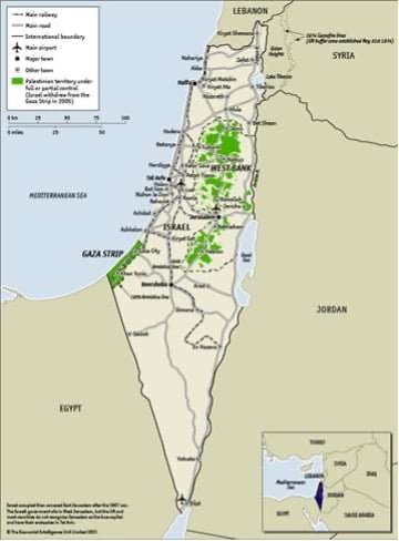 現今以色列版圖。(圖片來源:Economist Intelligence)