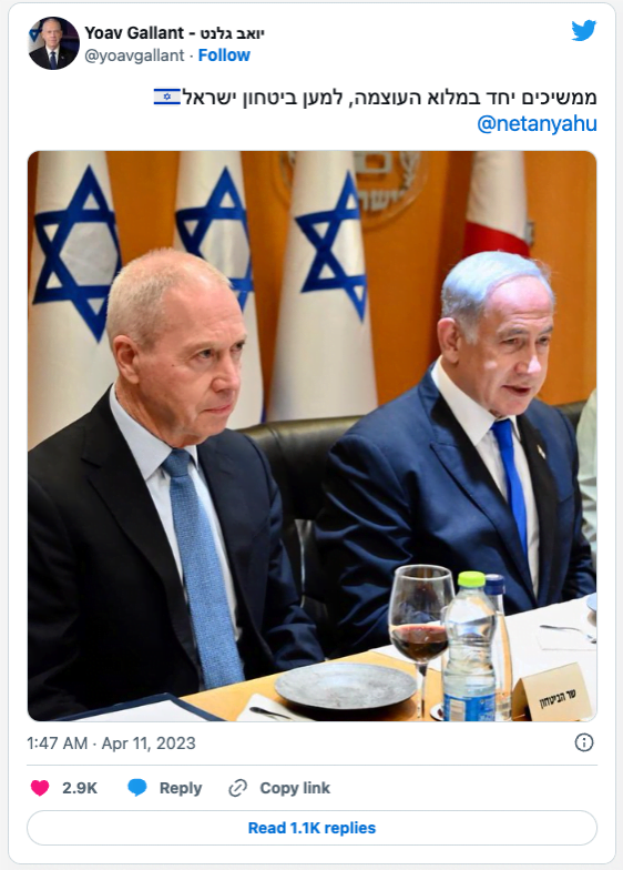 “Netanyahu ends Gallant crisis, reinstates Israel’s defense minister”, JP, 2023/04/11