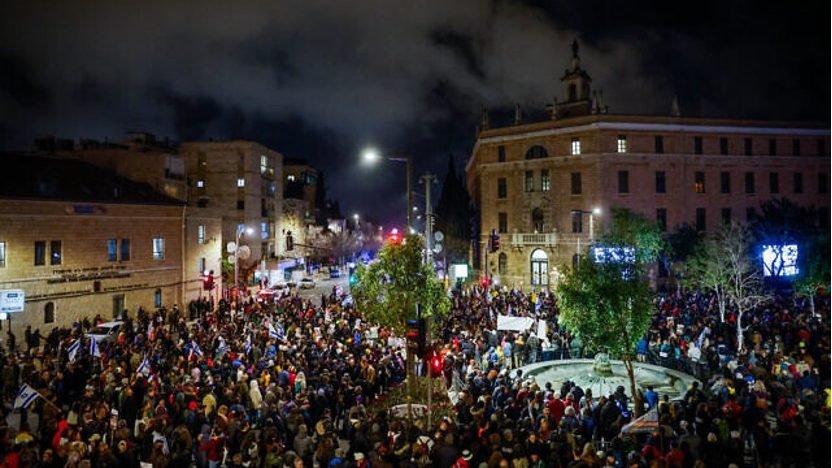 2024年3月2日,耶路撒冷的巴黎廣場,被哈馬斯扣押在加薩的人質家屬和支持者呼籲釋放人質。(照片來源:Eilat Markovitch / Pro-Democracy Protest Movement)