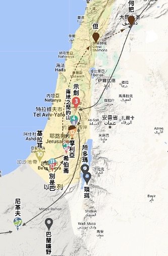 創世記15:18-21描述了「亞伯拉罕之約」的一部分 ,主要提及神應許亞伯拉罕和他後裔的土地範圍:「耶和華與亞伯蘭立約,說:『我已賜給你的後裔,從埃及河直到幼發拉底大河之地,就是基尼人、⋯⋯耶布斯人之地。』」(參考下圖:亞伯拉罕生平旅程)