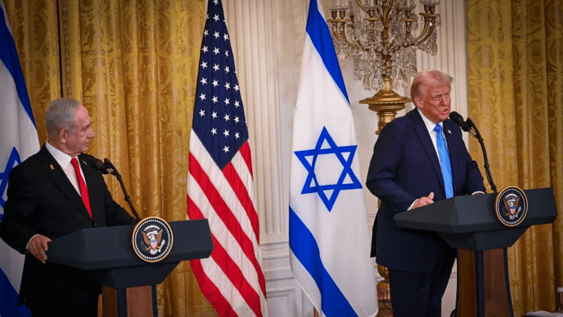 2025年2月4日,美國總統川普和以色列總理納坦雅胡在白宮發表談話。(照片來源:Liri Agami/Flash90)