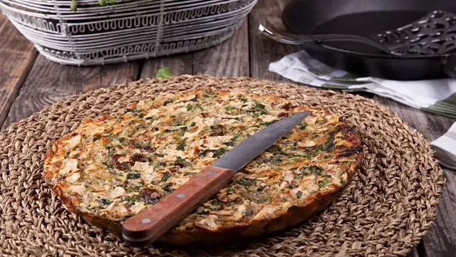 這款加了起司和韭蔥的烘蛋真是一道豐盛又營養的早晨餐點。建議一週的開始就先烤一大盤,早上切一塊再加熱,就能立即食用,不但美味且讓你元氣飽滿。