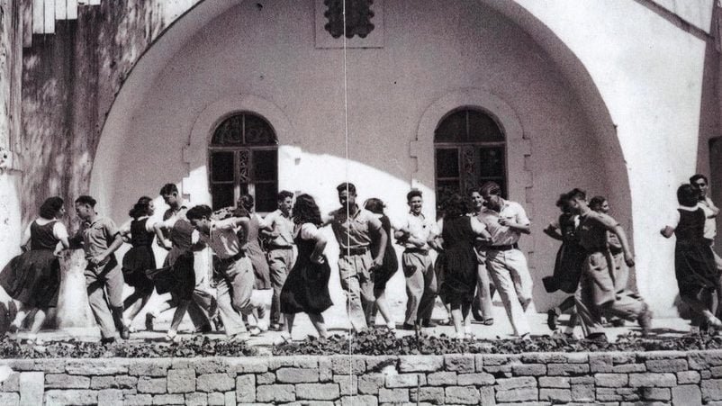 1945年米克維以色列學校的學生慶祝75周年校慶。(Mikve Yisrael)