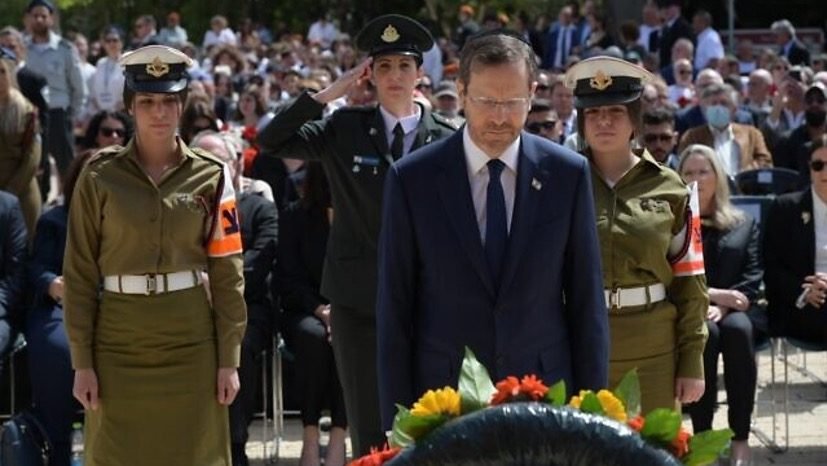 總統赫爾格和他的妻子米哈爾(Michal)週四稍早參加在大屠殺紀念館(Yad Vashem)的獻花儀式後,也參與議會的紀念儀式。總統赫佐格大聲朗讀幾名在大屠殺中遇害的家庭成員的名字,以及「1943年1月在波蘭沃姆扎猶太區(Lomza Ghetto)被謀殺並流放到奧斯維辛集中營(Auschwitz)的一萬名猶太人,他們當時就如同待宰的羊羔一樣。」