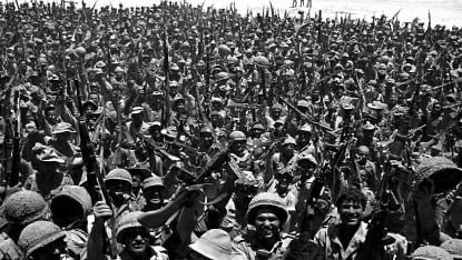1967年6月10日,六日戰爭結束,興高采烈的以色列軍隊。(圖片來源:美聯社)