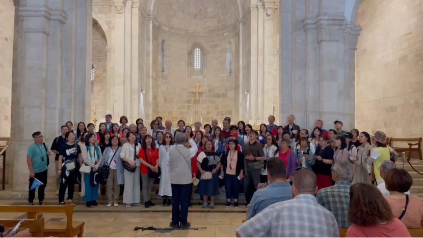 2023年台灣ICEJ住棚節走禱團於聖安娜教堂內吟唱「奇異恩典」。