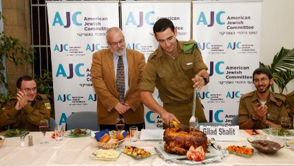 在以色列軍隊服役的美國士兵,享用由美國猶太人委員會在耶路撒冷舉辦的感恩節晚餐。