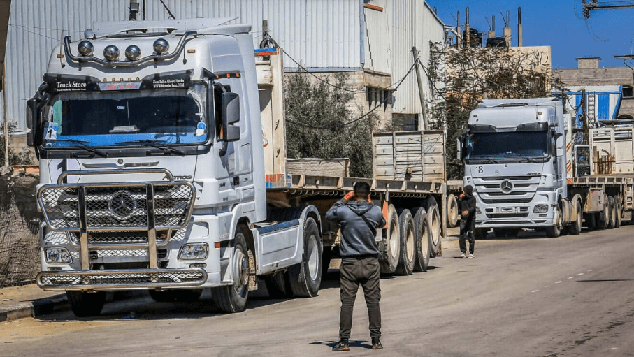 2025年3月2日,送完物資後,停在加薩南部的貨車。(照片來源:Abed Rahim Khatib/Flash90)