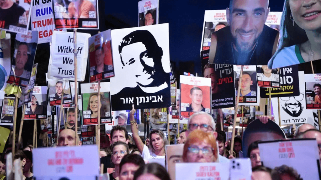 2025年7月5日,以色列人民舉行示威以支援達成人質交換協議。(照片來源:AVSHALOM SASSONI)