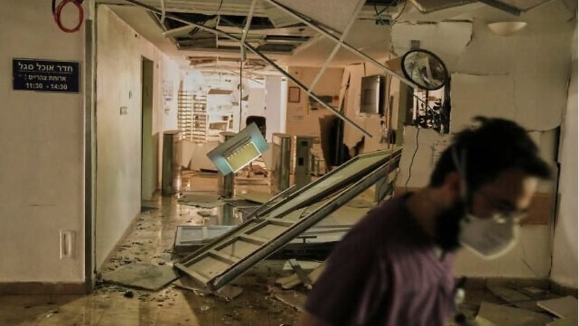 2025年6月19日星期四,以色列別是巴(Beersheba),索羅卡醫院(Soroka hospital)遭伊朗發射的導彈襲擊後,一名醫務人員在受損區域行走。(照片來源:AP/Leo Correa)