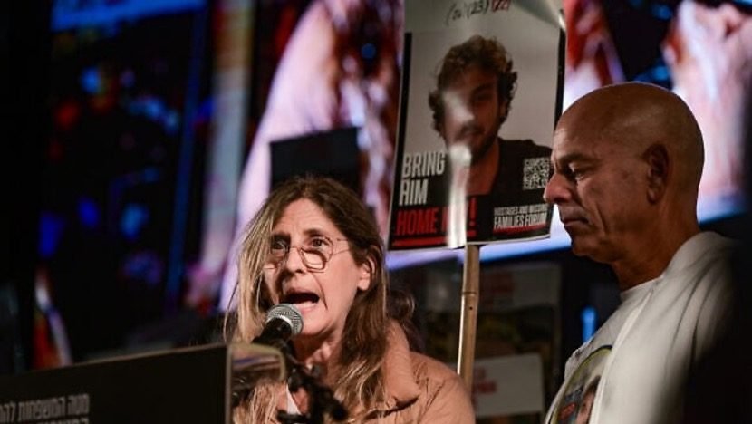2025年3月8日,人質亞隆.歐赫爾的母親伊迪特.歐赫爾在特拉維夫人質廣場舉行的集會上發表講話,呼籲釋放被哈馬斯恐怖分子劫持的加薩以色列人質。(照片來源:Avshalom Sassoni/Flash90)