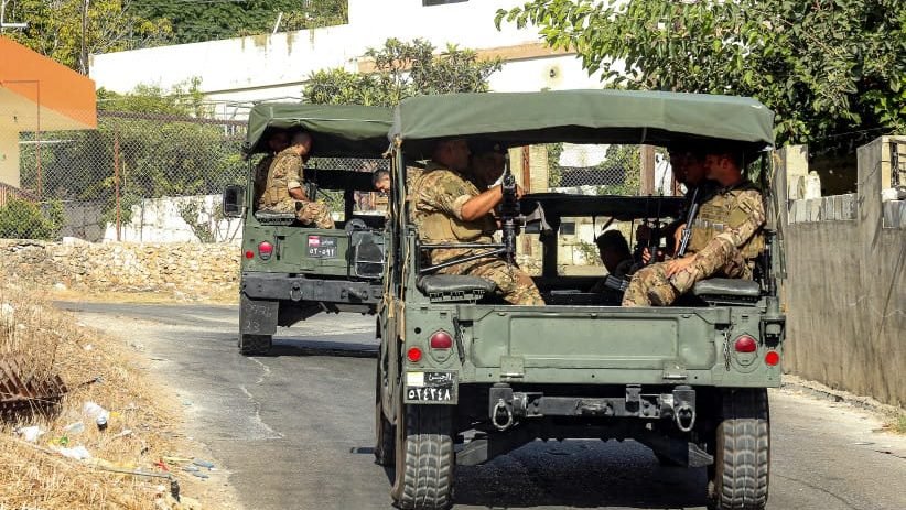 2025年9月13日,黎巴嫩政府軍車輛行經黎巴嫩南部城市賽達(Sidon,又名「西頓」)。(照片來源:MAHMOUD ZAYYAT/AFP via Getty Images)